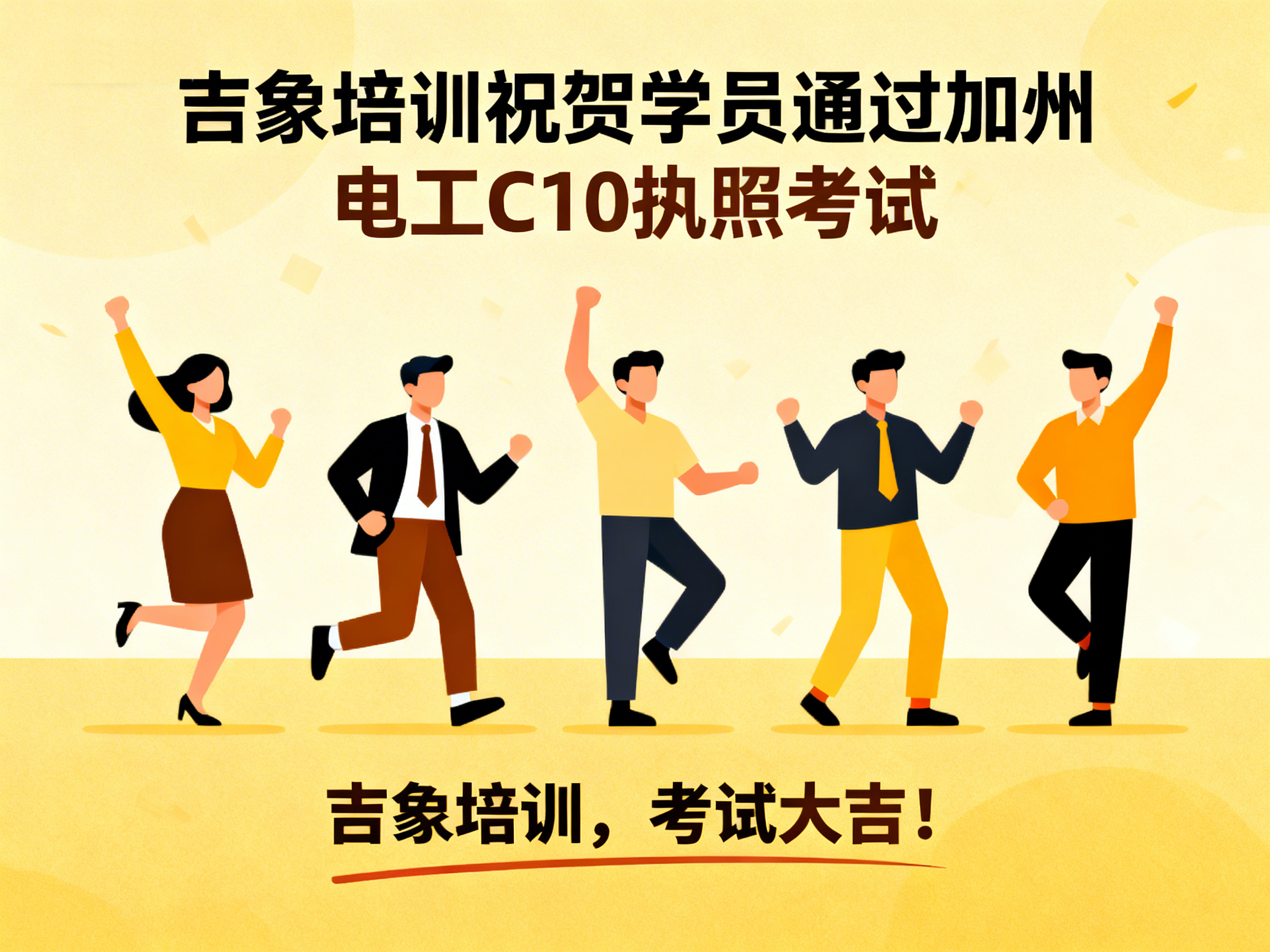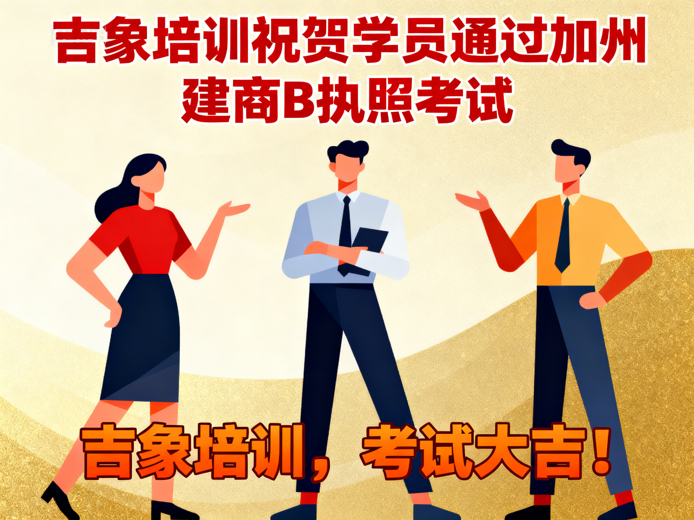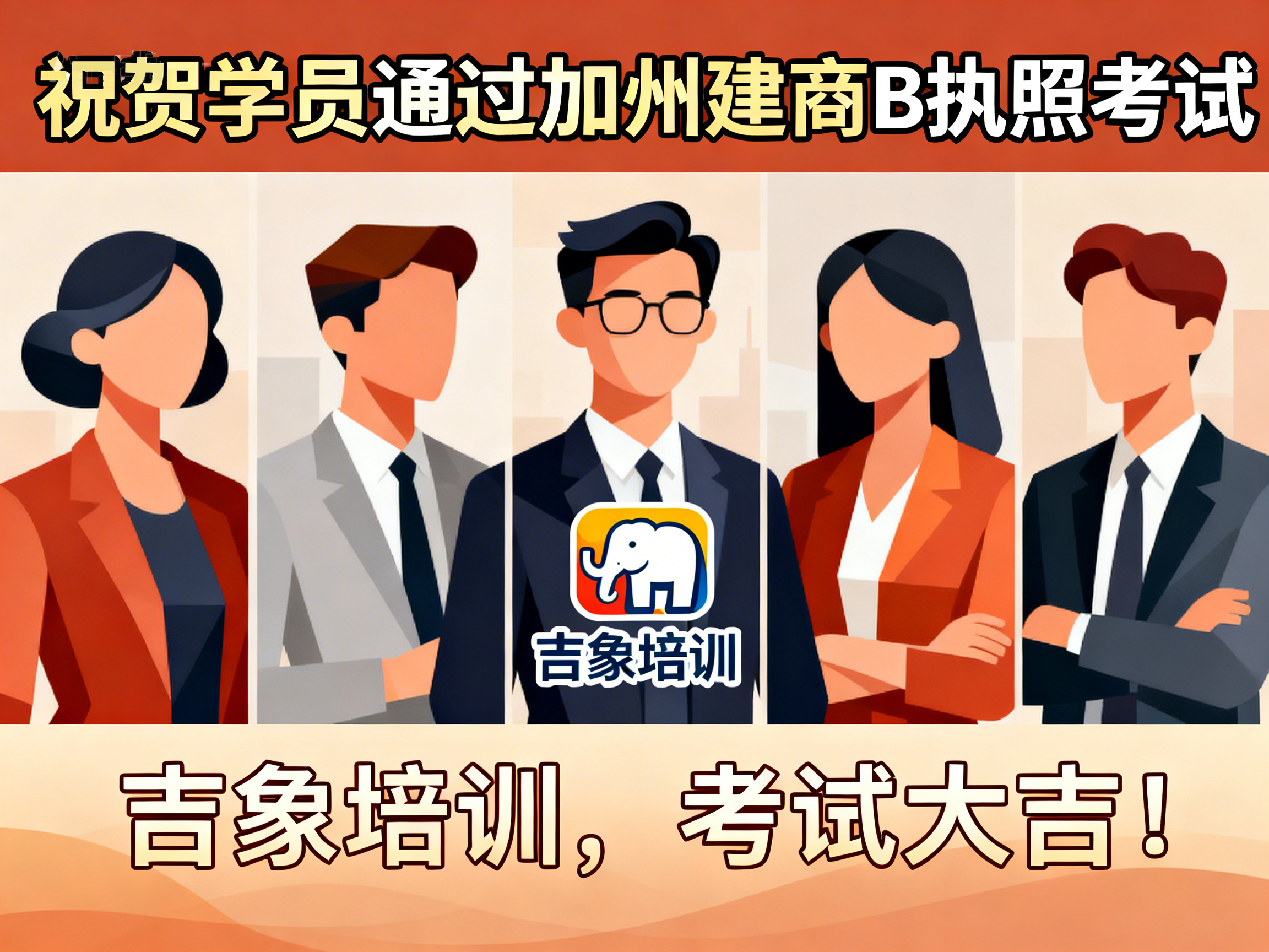 上周,吉象建筑执照培训中心再传捷报——学员 David Wang 顺利通过加利福尼亚州建商 B 类执照考试,正式迈入持证专业建筑承包人的行列。 这一优异成绩不仅体现了学员个人的努力与专业能力,也再次验证了吉象培训在建筑执照教育领域的教学质量与培训实力。 学以致用 · 专业指导助力成功 作为加州知名的建筑执照培训机构,吉象培训始终坚持以“实战教学、精准辅导、稳步取