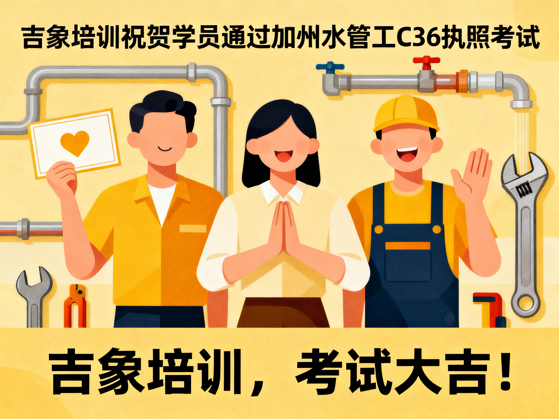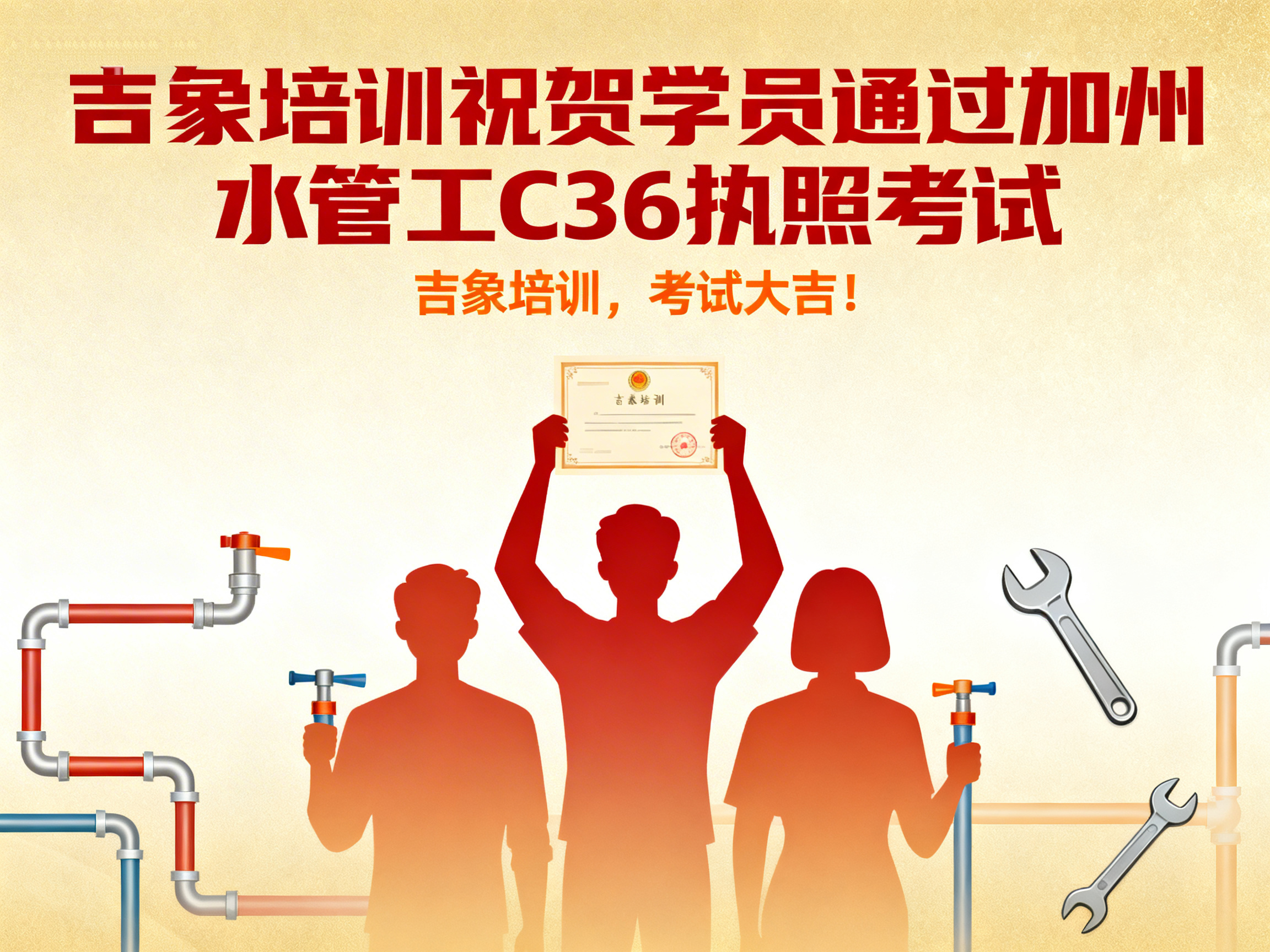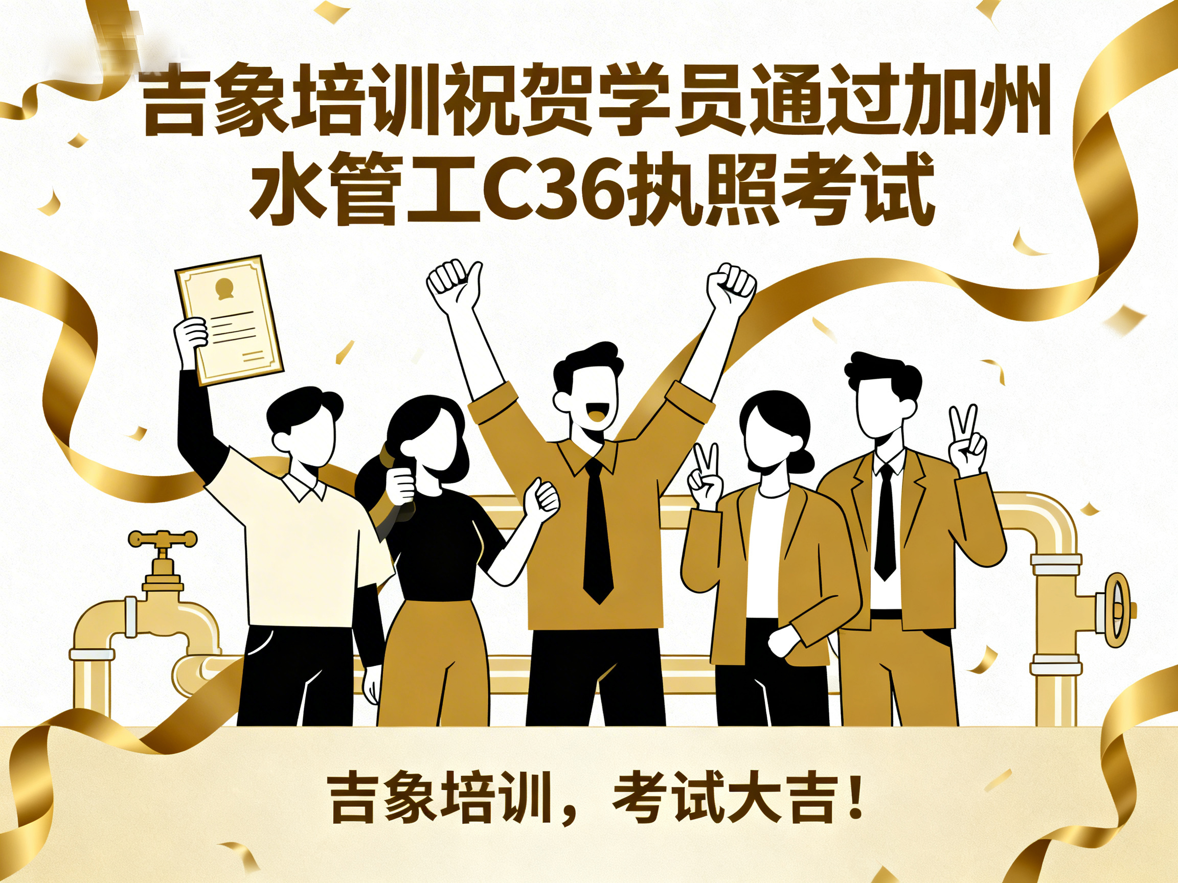 上周,吉象建筑执照培训中心再传捷报——学员 Joseph Wang 顺利通过 加利福尼亚州建商 B 类执照技术考试,正式迈入持证专业建筑承包人的行列。 这一优异成绩不仅体现了学员个人的努力与专业能力,也再次验证了吉象培训在建筑执照教育领域的教学质量与培训实力。 学以致用 · 专业指导助力成功 作为加州知名的建筑执照培训机构,吉象培训始终坚持以 “实战教学、精准辅导