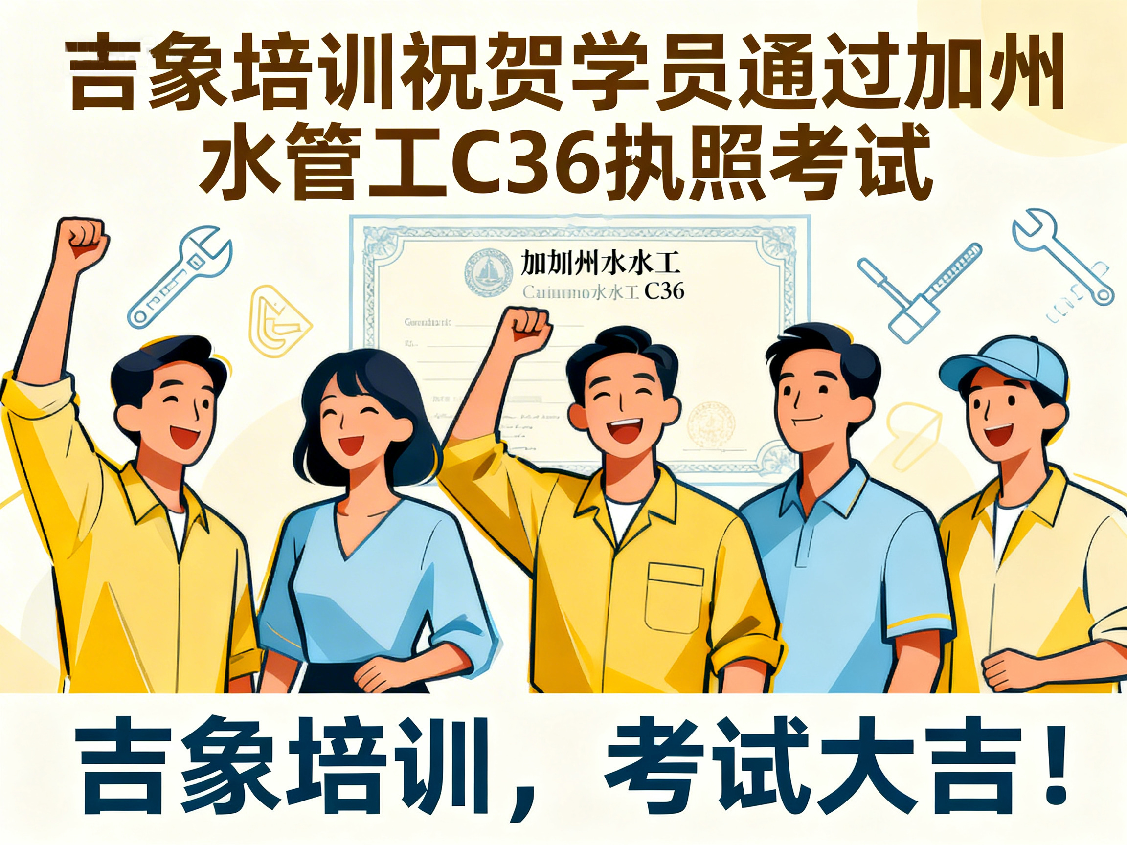 上周,吉象建筑执照培训中心再传捷报——学员 Chris Cui 顺利通过加利福尼亚州建商 B 类执照考试,正式迈入持证专业建筑承包人的行列。 这一优异成绩不仅体现了学员个人的努力与专业能力,也再次验证了吉象培训在建筑执照教育领域的教学质量与培训实力。 学以致用 · 专业指导助力成功 作为加州知名的建筑执照培训机构,吉象培训始终坚持以“实战教学、精准辅导、稳步取