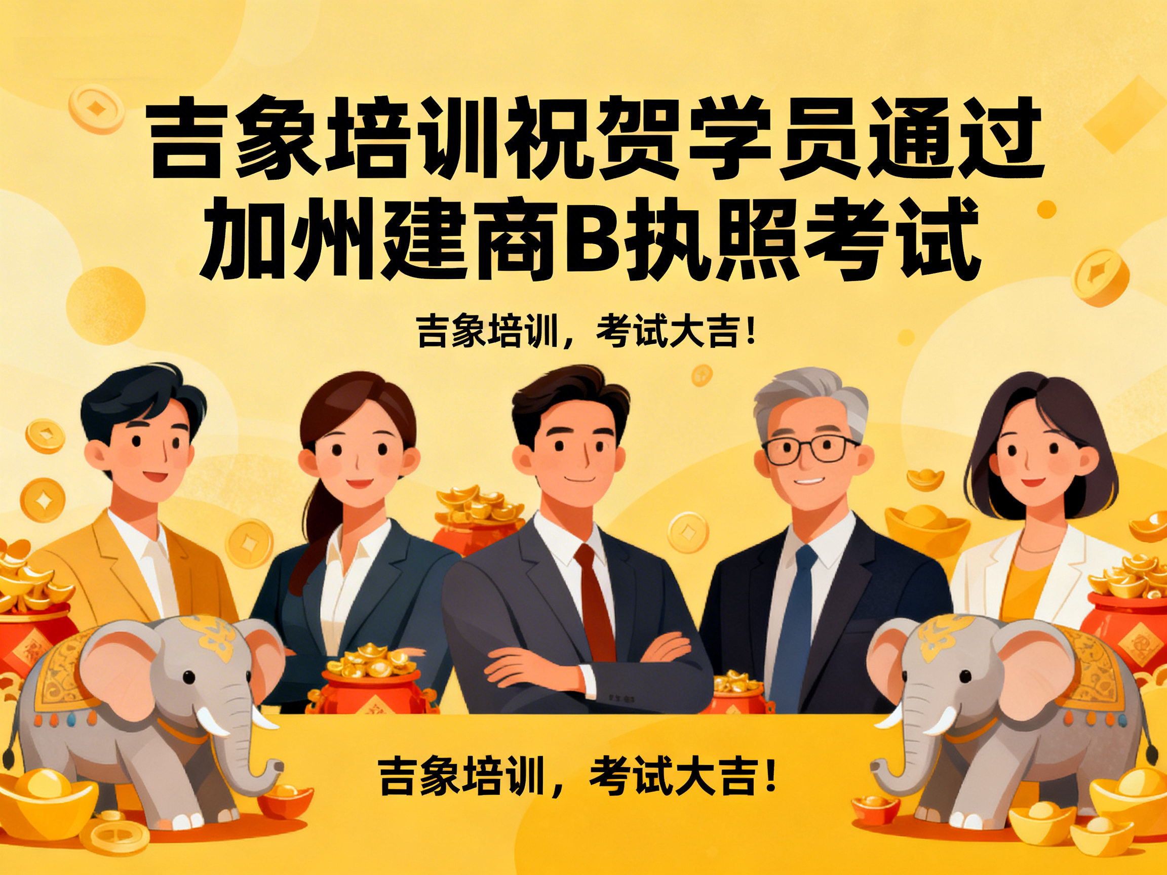 上周,吉象建筑执照培训中心再传捷报——学员 Kevin Yang 顺利通过加利福尼亚州建商 B 类执照考试,正式迈入持证专业建筑承包人的行列。 这一优异成绩不仅体现了学员个人的努力与专业能力,也再次验证了吉象培训在建筑执照教育领域的教学质量与培训实力。 学以致用 · 专业指导助力成功 作为加州知名的建筑执照培训机构,吉象培训始终坚持以“实战教学、精准辅导、稳步取
